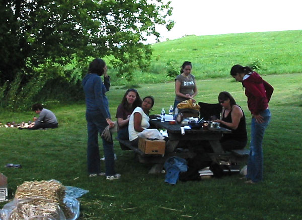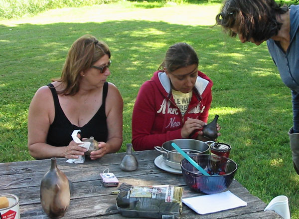 Members of the Dorval Potters Guild shared a "healthy" pot luck lunch on a glorious day while they tended their smoking creations.