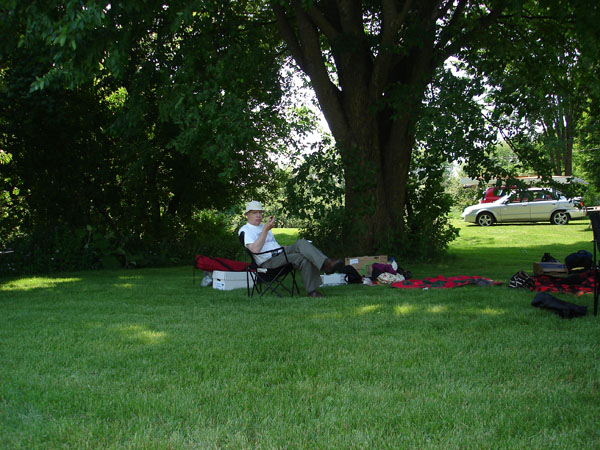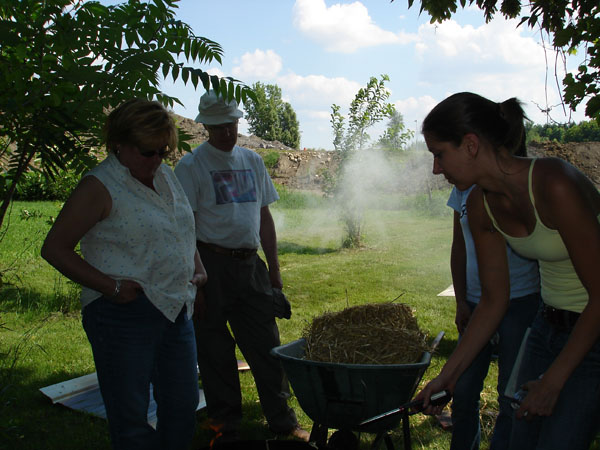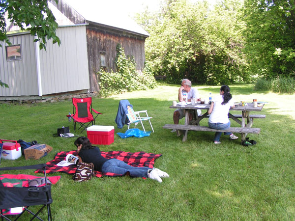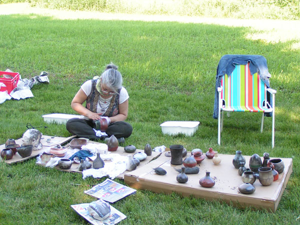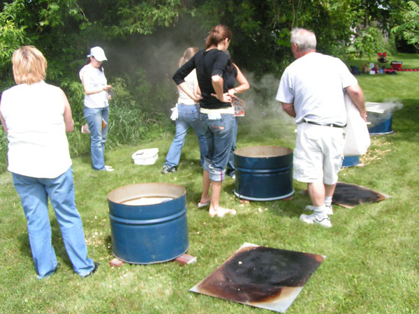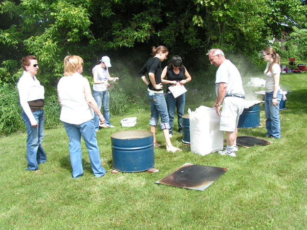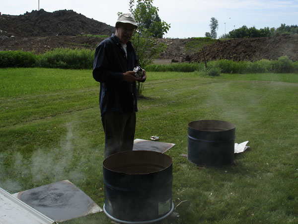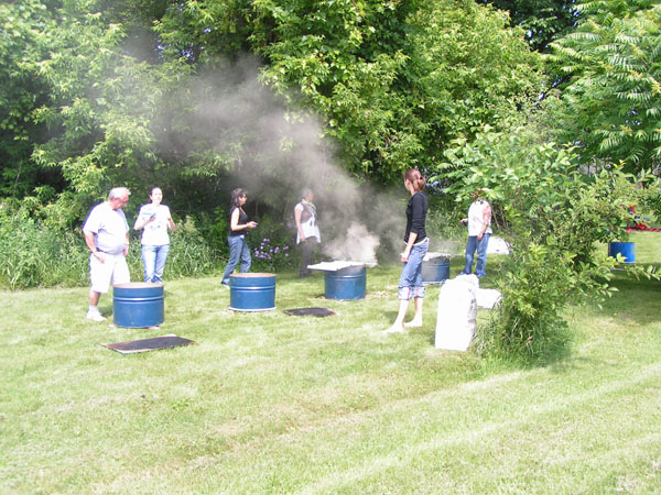 Members of the Dorval Potters Guild shared a pot luck lunch on a sunny day in a construction oasis while they watched the smoking bins and hoped for the best.