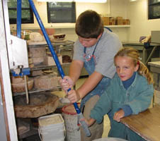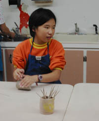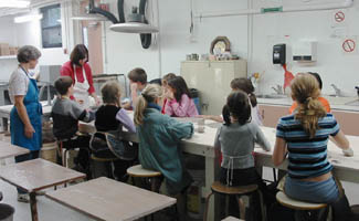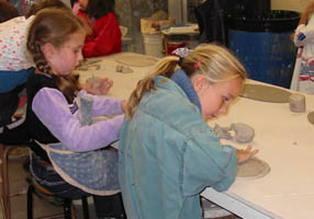 The children have fun using the slab roller and extruder and hand building creative pottery pieces. They enjoy personalizing their works, digging for slip and sharing moments with their friends. Brenda leads the Friday afternoon class. See their creations