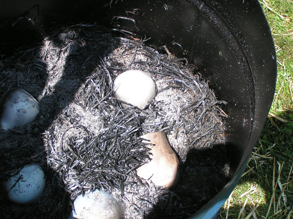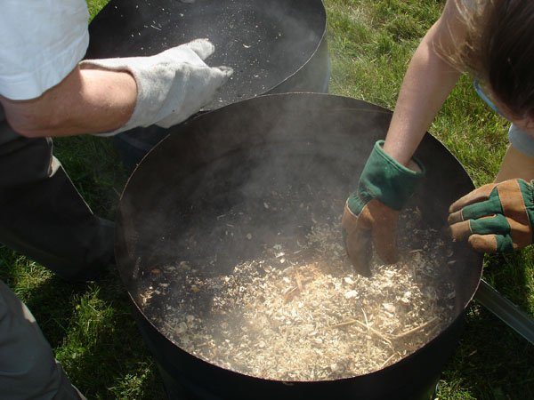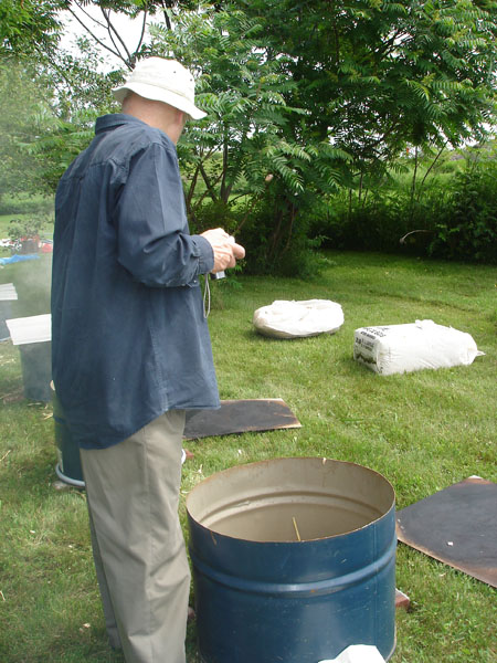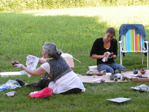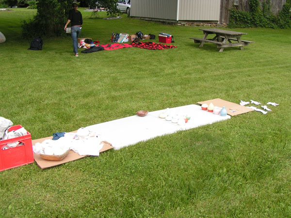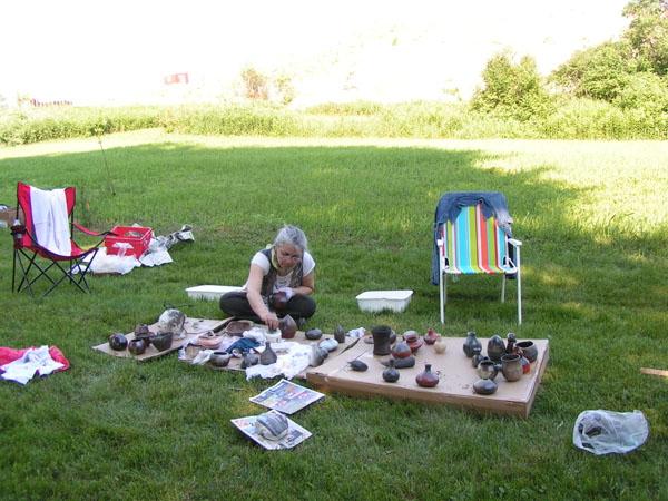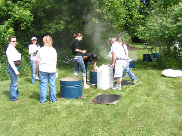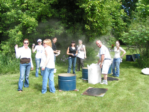 Members of the Dorval Potters Guild shared a pot luck lunch on a sunny day in a construction oasis while they watched the smoking bins and hoped for the best.
