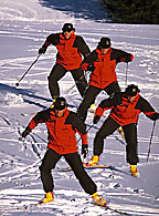 In cross-country skiing there are two styles. There is the skating style and the classic style. In the classic style you move your skis horizontally over the snow one at a time in the track. You move one pole at a time making you go faster and helping you go up hills. You use poles that go up to your armpits and skis slightly taller than you. The other style is skating. In this style you do the same as ice skating except you use your skis. You also have the help of your poles. You use your poles in the style of double poling. This means that you push both poles at the same time off the ground. Your poles go up to your ears and your skis are your slightly smaller than you. Generally the skating style is faster than the classic style.
